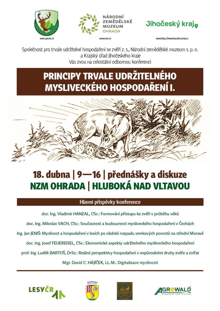 V sobotu 18. dubna se v prostorách Národního zemědělského muzea Ohrada v Hluboké nad Vltavou uskuteční odborná konference Principy trvale udržitelného mysliveckého hospodaření.